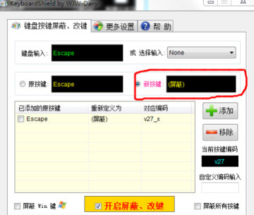 最终幻想13PC版ESC退出问题解决办法 来源: 飞翔小编 2014/10/11 10:55:14 浏览量:1069 在最终幻想13PC版游戏中,很多玩家遇到了ESC退出问题,这里给大家分享下这个问题的解决方法。实在是无奈的方法,软件屏蔽掉Esc按键,游戏之后再恢复。软件是搜索来的,类似的应该很多。首先在键盘输入点击 Esc 按键:然后点选-新按键:这样你的Esc键 就被屏蔽了,再也不怕手贱了。游戏之后,直接关闭软件就可以恢复ESC按键了,希望对象我一样的很不习惯的有帮助。