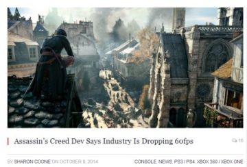 最近《刺客信条 大革命》游戏场景设计师Nicolas Guérin透露道:育碧在很长时间里一直在推动游戏的60帧。我不认为这是个好主意,因为你没有从60帧里获得什么,而且会让游戏玩起来感觉不真实。因此我认为TV Game产业会集体放弃这个标准,因为它很难实现,比30帧花双倍的努力,但却不能得到更好的渲染和图像质量。