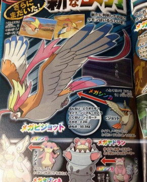 根据日本最新一期的CoroCoro杂志泄露的情报,《口袋妖怪 红蓝宝石重制版》的大针蜂,比雕、拉帝欧斯和拉帝亚斯的Mega形态正式曝光,在本作中的玩家可以骑乘Mega形态的拉帝欧斯和拉帝亚斯环游世界,并且在空中与珍珠钻石与黑白的四大神兽相遇。