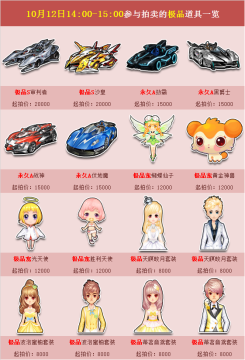 QQ飞车10月12日限时拍卖活动介绍 来源: 飞翔小编 2014/10/12 9:09:15 浏览量:239 QQ飞车将在10月12日下午举办新一轮极品道具拍卖会,极品S车,永久A车等稀有道具一起登场,各位飞车手们可千万不要错过。本次活动时间为10月12日下午14:00-15:00,想要参加拍卖会的玩家们也别迟到哦。