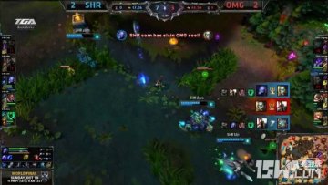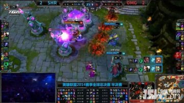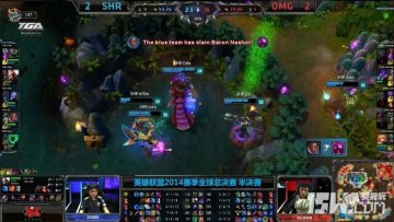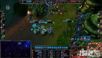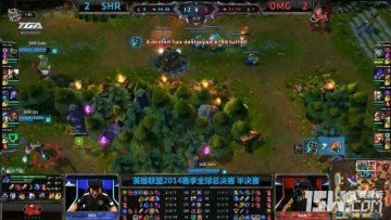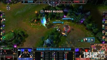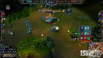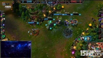 15分钟,皇族上路再次包抄,用锤石换掉OMG三人,同时推掉OMG上路外塔。