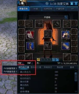按“P”打开角色界面, 在下图位置可以查看PVE装备强度。