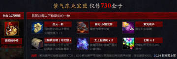紫气东来宝匣售价730金子,开启奖励如下所示: