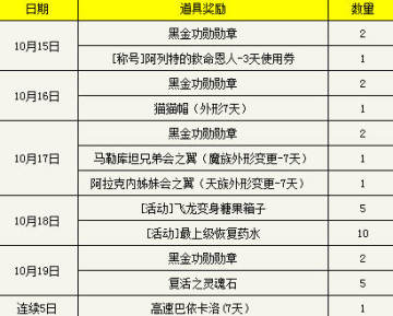 10月15日16点至10月19日24点,角色在线满20、30小时可获得相应道具礼包奖励