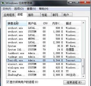 4M的宽带网速会被限制在120KB/S左右,想要提高速度需要打开任务管理器,找到TenioDL.exe这个程序,就是下面我点击到的这个了。