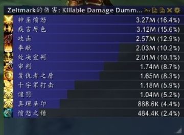 由于打DPS不抗怪,所以不需要盾击的buff,所以正义盾击不用加入循环。如果需要紧急客串T,那么只要打开正义之怒,疾言厉色换成正义盾击输出就可以,再DPS的时候点掉正义之怒换回来就可以。
