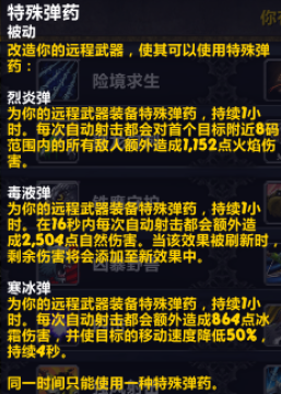 “奥术射击”、“多重射击”命中会附带“毒蛇钉刺”效果,眼镜蛇射击现在不会延长其持续时间,应该做好监控。