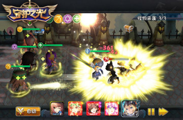 由于《守护之光》操作非常自由灵活,在小兵从屏幕右侧走过来的过程中,可以先不让近战英雄主动接近,而是保持不动,甚至可以主动后撤,诱敌深入,待到不得不短兵相接之时,再利剑出鞘。这酸爽,难以阻挡!