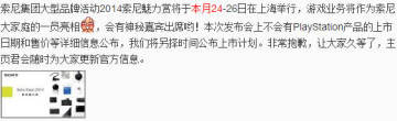 根据@PlayStation中国发布的微博信息表示,此次在上海召开的索尼集团大型品牌活动2014索尼魅力赏上并不会公布关于PlayStation产品的上市日期和售价的消息,令许多期待着国行PS4的玩家有些失望,不过根据最新的爆料,国行PS4已经通过了3C认证,也就是说,PS4入华的日子真的不会远了。
