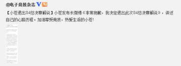 LOL英雄联盟解说小苍退出S4总决赛解说 来源: 飞翔小编 2014/10/16 8:40:24 浏览量:284 前段时间腾讯举办的投票选举S4总决赛解说活动迎来了大片的质疑,很多人觉得小苍是在暗中刷票,昨日小苍在微博表示将退出本次S4总决赛的解说。【小苍退出S4总决赛解说】小苍发布长微博《非常抱歉,我决定退出此次S4总决赛解说》,讲述自己的心路历程。加油享受竞技,热爱生活的小苍!看来这次刷票门事件对于小苍的影响还是非常大的。