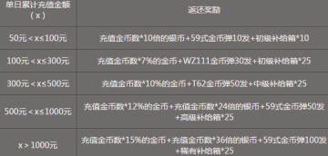 坦克世界开启活动10月16日至10月18日24:00,在坦克世界单日累计充值满一定金额,可于次日额外获得以下返还奖励。