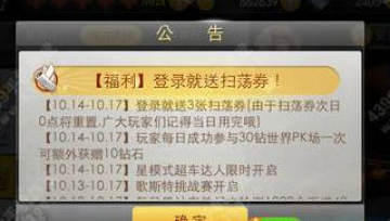 活动内容:活动期间,玩家每日登陆游戏,即可获得3张扫荡券!