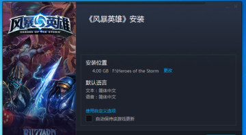风暴英雄国服客户端安装程序是3012KB,完整文件是4G,所以你的硬盘需要有4G空间才能安装。