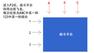 ※第二个阶段是扎伊拉暂时消失,大量的飞龙会出现在战斗平台的四个方向,开始向一条线喷火,喷火的原理是,平台的每条边被三等分,喷火每次覆盖其中的一等分。主要难点在于,此时场上会出现3个龙骑兵,他们除了正常攻击仇恨目标以外,还会使用锁链来将远处的玩家拉到身边。也就是说,即使玩家通过走位避开了喷火,也完全有可能被龙骑兵拉回喷火范围。这里需要的是坦克对3个龙骑兵的位置的大致控制和其他玩家自身走位与自保能力的掌握。同时,还需要输出大量的DPS来击杀这3个血量并不算少的龙骑兵。
