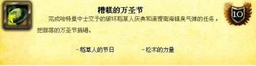联盟:完成任务“臭气弹轰炸”、“暴风城大扫除”、“收获的时刻”、“败其兴致”,破坏部落的万圣节。