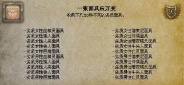 收集下列24种不同的劣质面具。(从原来的20个变成24个)