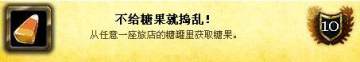 详解:这个成就其实是要你把各个地图上的旅馆跑一遍。任务需要的糖罐就在旅馆老板的身边,带叹号的即是了。注意,“一把糖果”不能叠加的,拿了以后请打开,才能拿下一个。