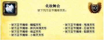 化妆舞会:被7种万圣节魔杖变形。这个成就不是看你的运气,而是看你队友的运气,魔棒是不能将自己变身的。首先,你的队友要能从“糖果包”中开出万圣节魔杖,然后在组队/组团的情况下将你变形,总共7个形态。