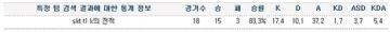 到现在为止,最高胜率的队伍是SKT T1 K。出战S3赛季总决赛SKT T1 K以15胜3败83.3%的胜率赢得S3赛季总决赛冠军。这当中SKT T1 K除了在和中国代表队OMG的比赛中输了一局,然后在四强赛与NJS的比赛中输了两局,之后就一直保持连胜的状态。
