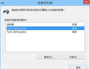 1.首先在主控台确认游戏控制器的编号,我的为「Twin USB Joystick」: