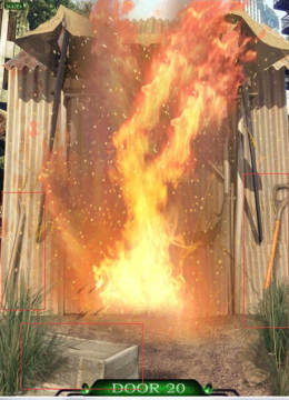 《100道门3》20关怎么过 第20关通关攻略 来源: 飞翔小编 2014/10/20 9:57:34 浏览量:364 100道门是一款人气非常高的益智解密游戏,游戏内容也很简单,就是利用自己的智慧通过100道门,下面为大家带来100道门3的第20关通过方法。第20关是非常有意思的一关,这一关的玩法很有趣,我们可以看到门被熊熊的烈火包围,想要过关的话一定要把门外的这片火扑灭。首先我们看到门外有三个比较特殊的物件,分别是铲子,撬棍和箱子。我们先将铲子和撬棍收集起来,然后用撬棍打开箱子。最后用铲子铲出箱子里面的沙子灭火,这道门就可以打开了。20关就这么通过了。