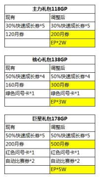 提升了月券奖励额度,增添了EP的额外奖励(调整部分显示为黄色)