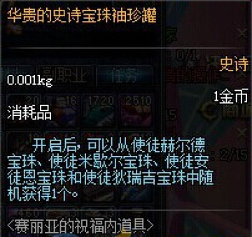 华贵的史诗宝珠袖珍罐开启有几率获得获得四使徒史诗宝珠: