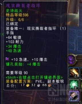 3.装备问题:有些SOO装备属性发生了变化,我以我有的装备为例,3号的戒指。由于命中转急速的关系,此戒指为战斗贼最好戒指,见图。
