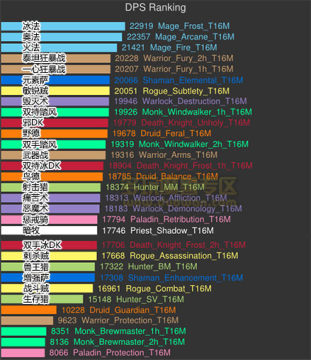 魔兽世界6.0前夕10月21日最新dps模拟 三系法爷登顶告诉你什么叫亲儿子 来源: 飞翔小编 2014/10/21 14:05:20 浏览量:1001 在国服魔兽世界前夕来临之后,最新的dpsRank榜已经出炉,法爷三系登顶。让我们一起来看看吧。在当前90级前夕版本情况下,SIMC针对T16史诗套装做出了DPS模拟,令人惊讶的是法爷三系专精占据排行榜前三,紧随其后的则是狂暴战。当前正式服6.0.2前夕版本DPS模拟,装备为T16史诗套。《德拉诺之王》当前版本下100级DPS模拟,装备为T17史诗套,踏风武僧力压冰法占据一二名。以上就是魔兽世界6.0国服前夕和100级测试服的最新dps排名一览。