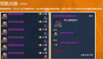 藏宝库黄金钥匙获取方式:除商城购买外,可以在飞龙工商使用材料+1金20银兑换藏宝库黄金钥匙,也可以使用10个钥匙碎片来合成藏宝库黄金钥匙。