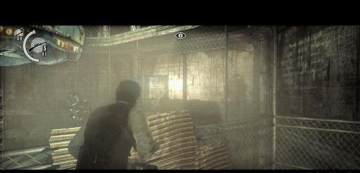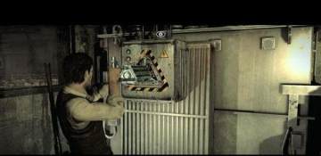 这个场景的通过方法是在一层蹲伏过去进入第一个门,然后来到二层找到电池组