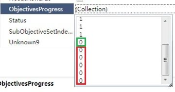 5)点击Objectve Progress后点击后你会发现,里面是一堆分行的0和1。每一行代表此任务的一个进度,0代表未完成,1代表完成。