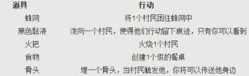 此外,你拿起的道具也会获得技能,利用他们可以有助于捕获村民。
