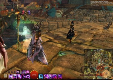 疯王的实验室(你需要在Queensdale地图Gendarran区域等待鬼屋大门敞开,和疯子船夫(夏尔)对话,选择“疯子宗教裁判所”带来进入实验室,或者你可以直接来到狮子拱门中间找两个旗子标示的NPC 左边那个Rasmus对话进入这个小游戏。