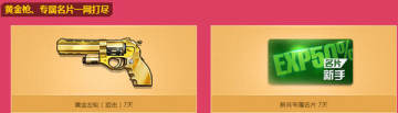 活动1:注册送妹子,黄金枪:所有2014年10月22日之后新注册特工,可以领取任意一个秘密花园系列女角色7天(三选一)和非卖黄金左轮7天、新手专属50%加成名片7天