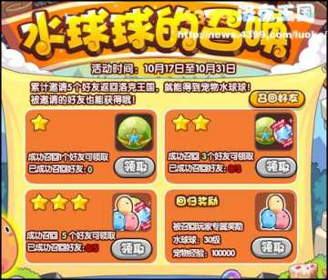 3、召回5个好友可以领取超级咕噜球、果儿糖和水球球!