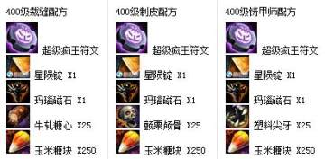 这里把疯王符文的配方也分享一下吧,同样的也是三个配方: