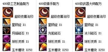 超级夜幕法印有三个配方,现在分专业给大家列出来: