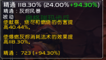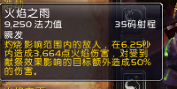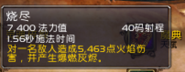 烧尽--1.5S--5463......火雨--1S(公共CD)--3664*1.5=5496...就时间来说就划算的,伤害略高一点,但是火雨不是一次性伤害,烧尽是一次性伤害,那么我们可以理解火雨的综合暴击几率的伤害综合可能会比烧尽高一些,并且就产生余烬有一个对比(第一个豆是自带的不用计算在内):