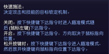 第一种为“关闭”,不使用快捷施法,下达技能指令之后还需要按下鼠标左键来确认,然后才施放技能。
