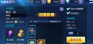 副本扫荡前提:该副本要三星通关,之后才可以进行扫荡。