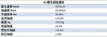 满级RS曙光技能:大约每隔60S时间获得7S隐身及提升惊险超车积分15%。