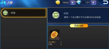 龙之鳞片可以在各大主城小天使处兑换丰富的经验,一个龙之鳞片可兑换58592点经验。