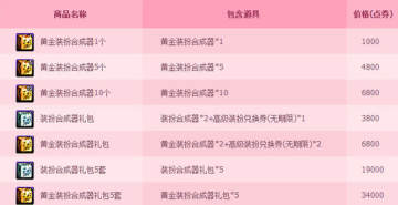 DNF守护者黄金装扮合成器限时出售开启,一下是商品列表。