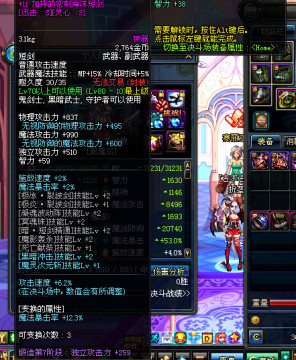 上面是我穿活动套时的属性。不高,不过毕竟新职业BUFF很嗨……