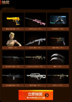 活动内容:活动期间,用户累计获得过的火力值达到指定数值,即可从该火力值对应的极限火力大礼包中选择一件道具领取。