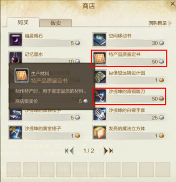 特产品质鉴定书 和沙提坤的青铜雕刀在杂货处可以购买