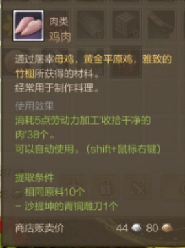 收拾干净的肉可以通过加工鸡肉、牛肉等+1个沙提坤的青铜雕刀 提取获得