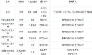 除了准备鱼竿之外,还需要准备“鱼饵”,下表为各种鱼饵的制作材料。