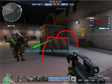 如果你来到最后一关那么你最难处理的是狙击手而不是BOSS,因为在BOSS的场地狙击手较多而且来自于不同的方位,下面这张地图的点位可以躲开其他点位狙击手的视线,你可以轻松击杀狙击手。另外也要呼吁队友在狙击手出现的第一时间将其打掉,因为狙击手的伤害比较高。
